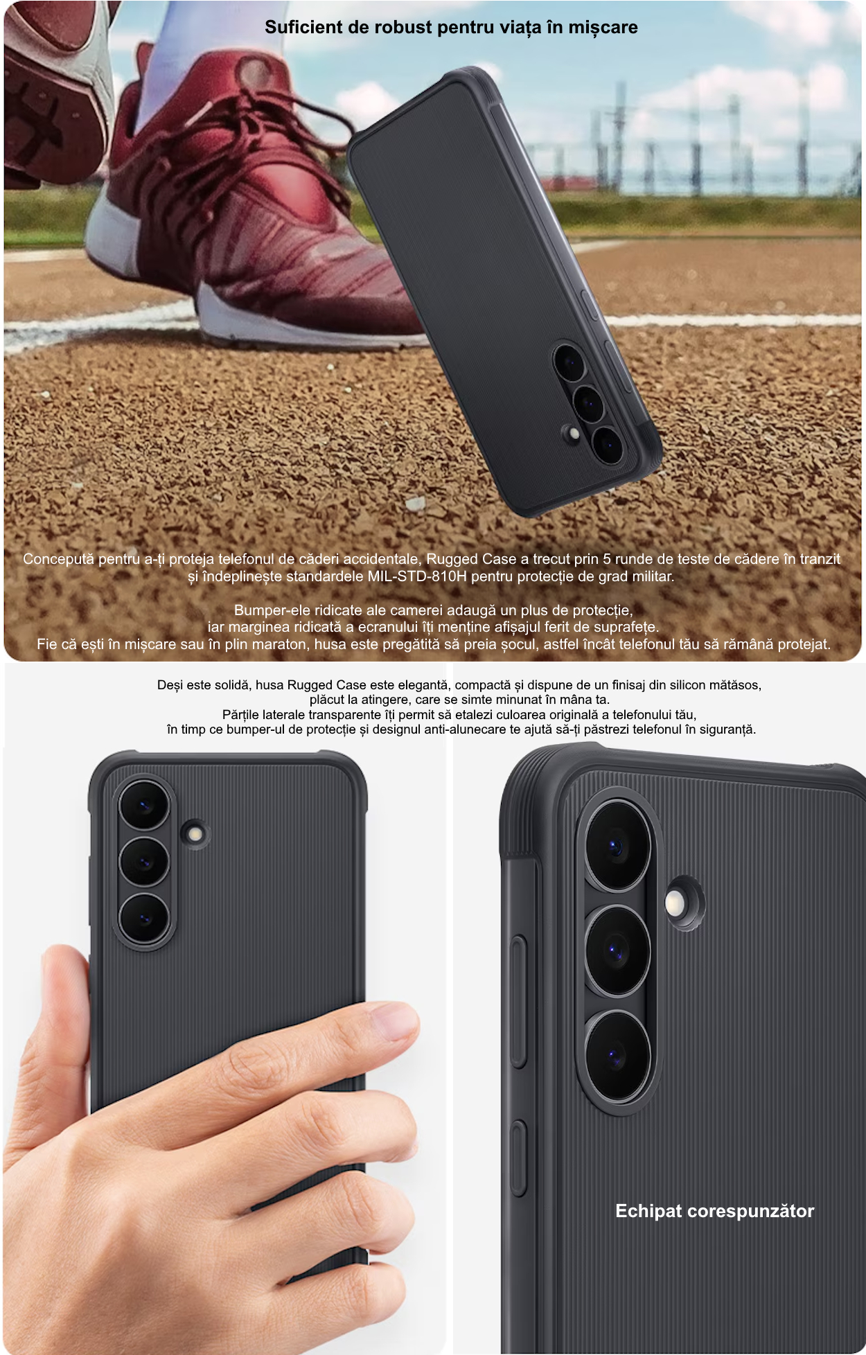 – realizat din material dur TPU, designul robust imbunatateste aderenta si previne caderile accidentale