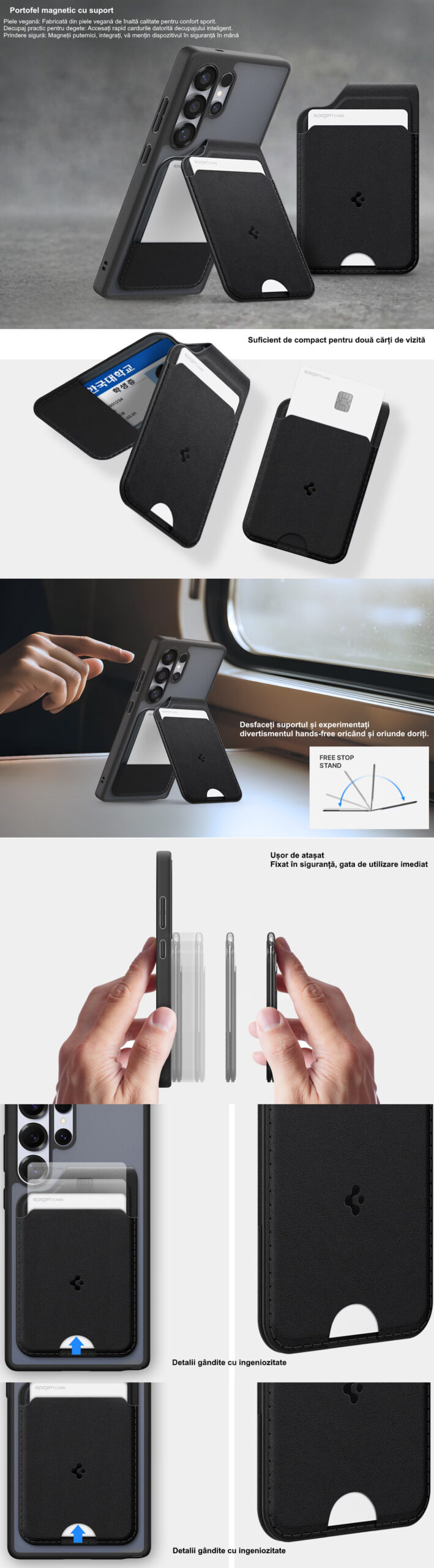– suport pentru carduri, inclusiv funcție de suport; suficient de compact pentru două cărți de vizită.