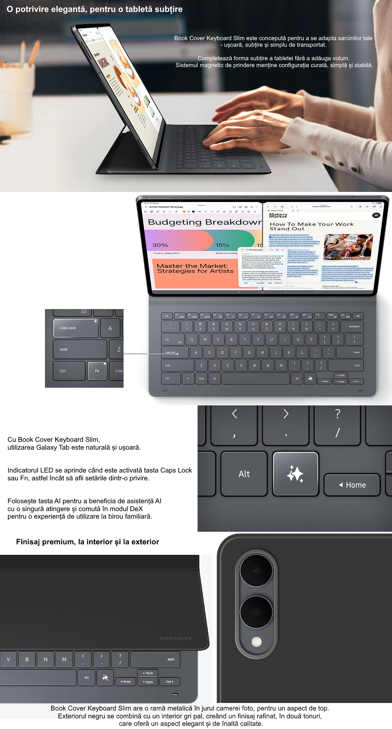 – functia Samsung DeX pentru o experienta de tip PC; tastatura cu 80 taste