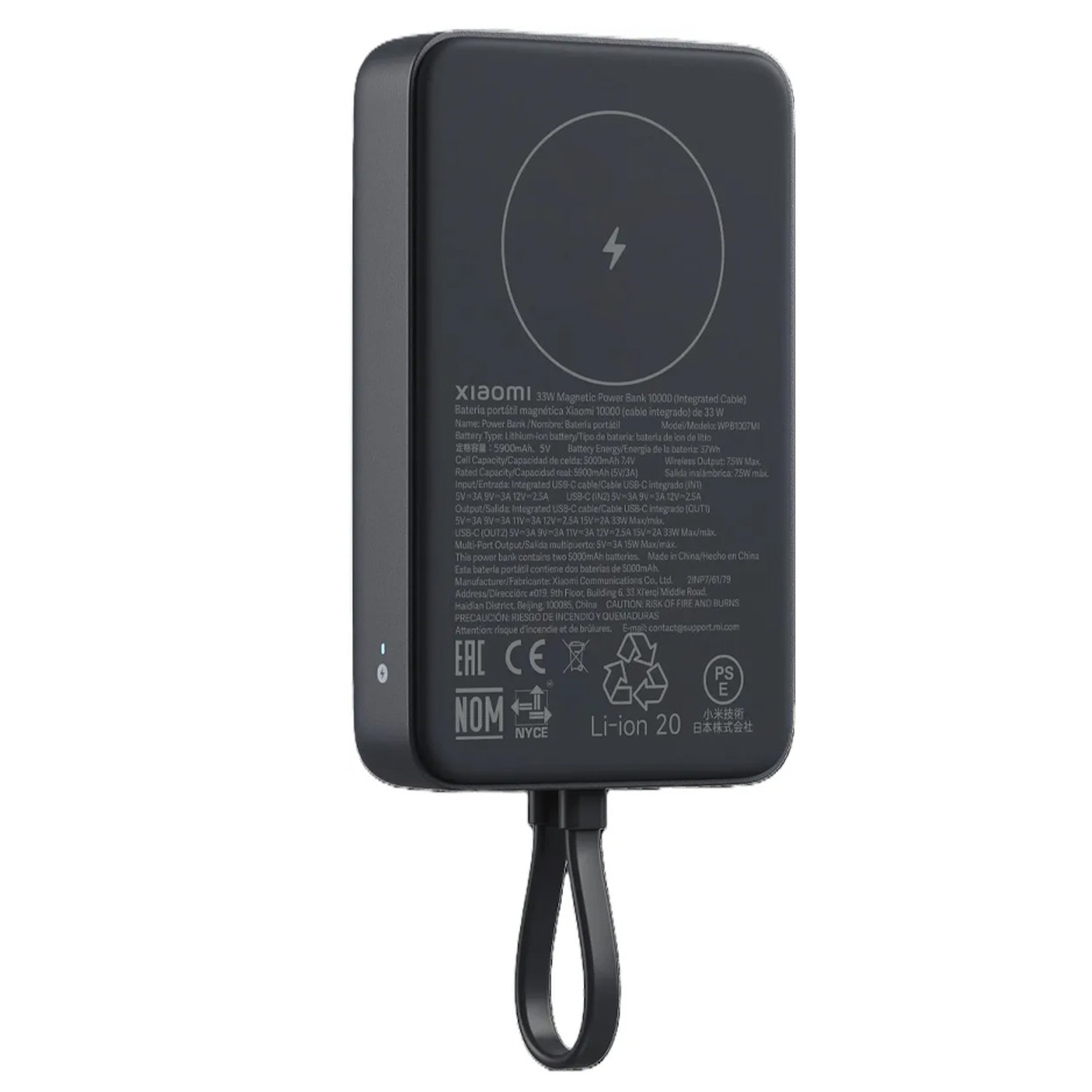 cablu USB Type-C integrat: 5V/3A; 9V/3A; 11V/3A; 12V/2.5A; 15V/2A – 33 W MAX.