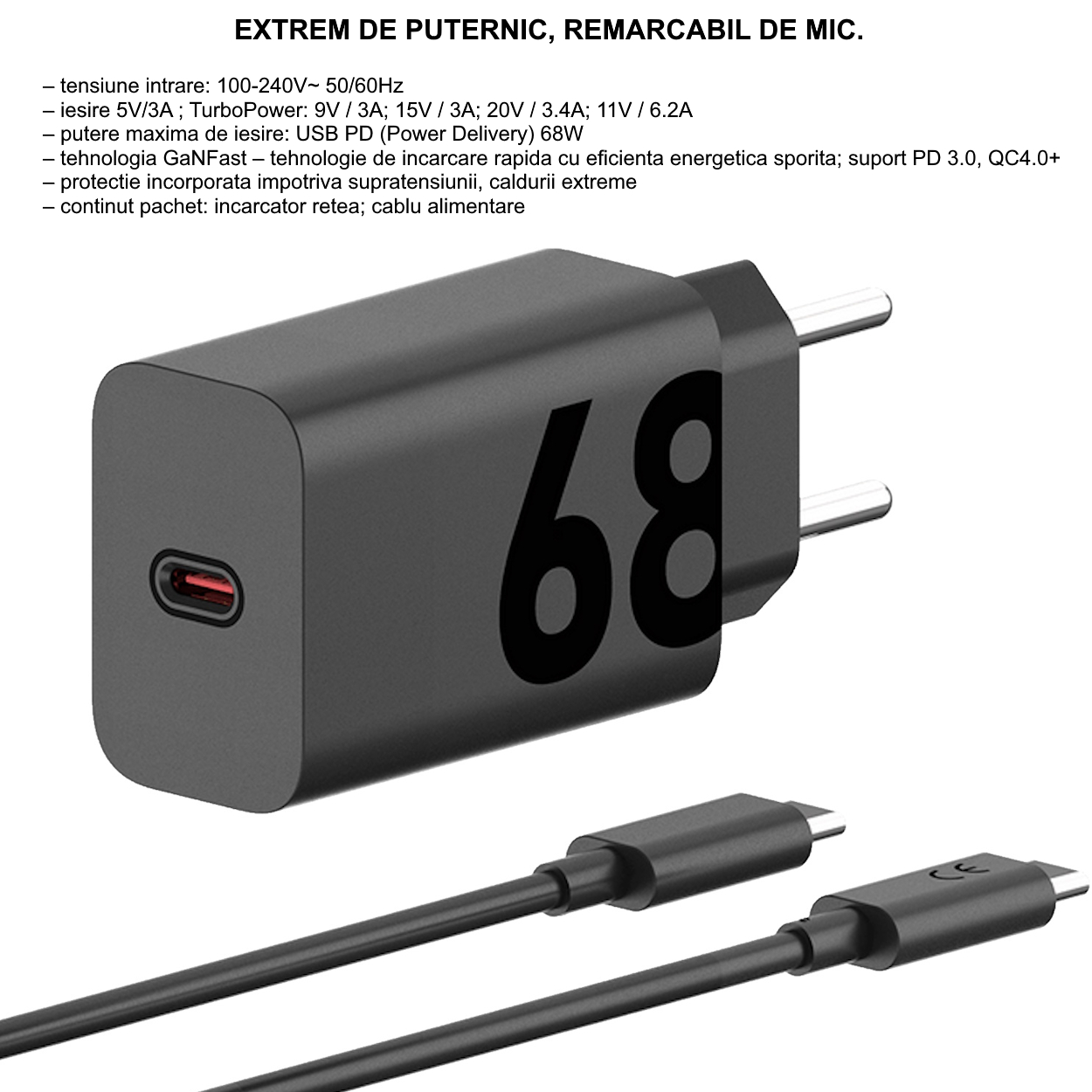 – putere maxima de iesire: USB PD (Power Delivery) 68W
