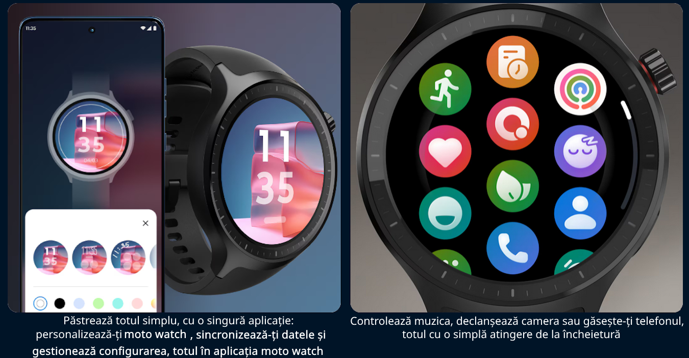 – conectivitate: GPS dual-band, Bluetooth 5.3 + BLE (prin conexiune Bluetooth si instalare aplicatie Moto Watch)