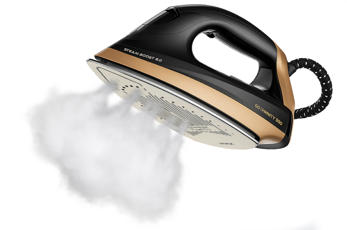 Fierul de călcat controlează automat temperatura plăcii de încălzire, în funcție de setările selectate pe panoul digital care selectează temperatura optimă, iar pornirea aburului se realizează prin simpla apăsare a butonului ușor accesibil și ergonomic situat pe partea inferioară a mânerului.