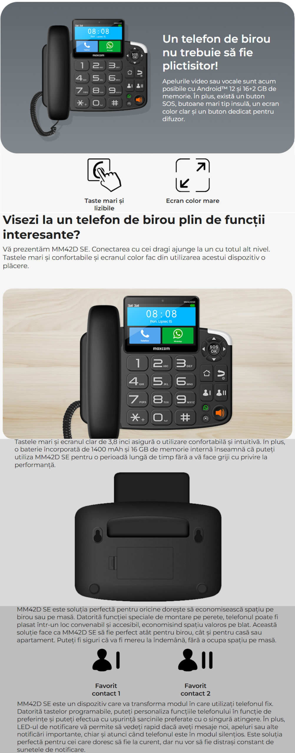 Telefon fix Dual SIM MaxCom Desk MM42D SE 4G, Black