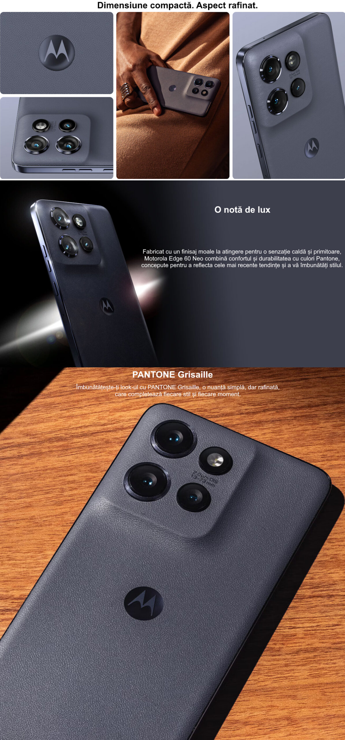 Telefon mobil Dual SIM Motorola Edge 60 NEO, 5G, Octa Core 2.6 GHz, 256 GB + 12 GB RAM, PANTONE Grisaille