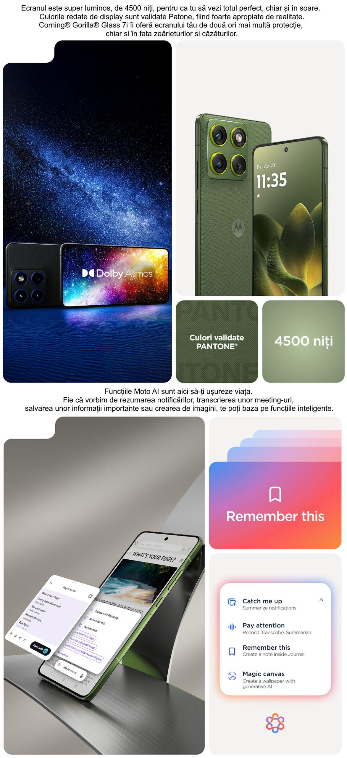– protectie Gorilla Glass 7i; suport HDR10+; rata de reimprospatare a ecranului de 120 Hz