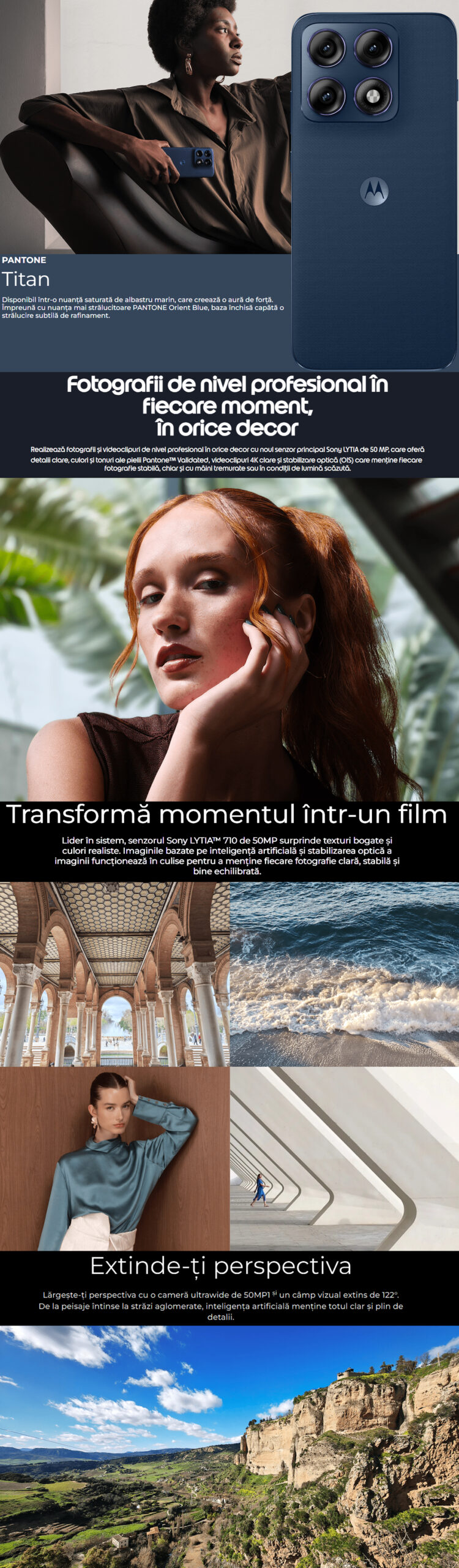 – 50 MP, (ultrawide) f/2.0, 122˚FOV, tehnologie Quad Pixel pentru 1.28 μm, Macro Vision, Phase-Detection Autofocus
