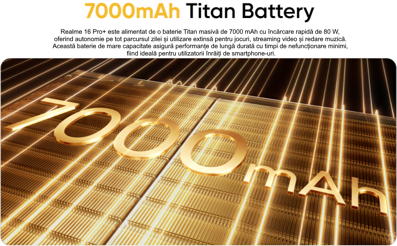 Acumulator încorporat Li-Ion 7000 mAh; incarcare rapida ultra charge – max. 80W (100% in 57min), wired reverse charging: 10W